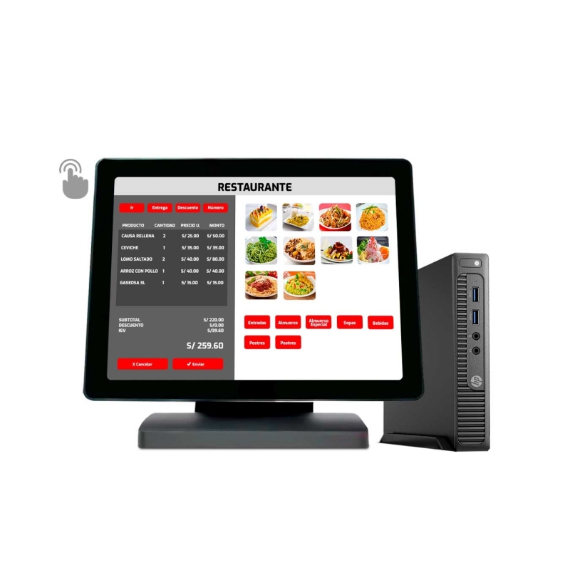 Punto de Venta - Computadora HP 800 G1 ULTRA SLIM Core i5 + Pantalla táctil multipunto